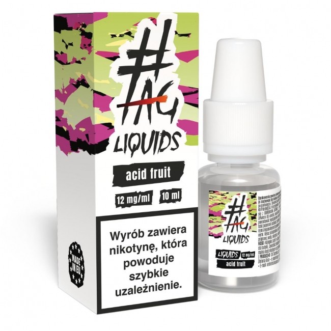 #Tag to polska marka, która dba o jakość swoich produktów na każdym etapie produkcji. Liquid o smaku Acid Fruits znajduje się w wygodnej butelce 10 ml, a zabezpieczona zakrętka zwiększa bezpieczeństwo przechowywania. Ta standardowa pojemność to także komfort podczas napełniania wkładu.